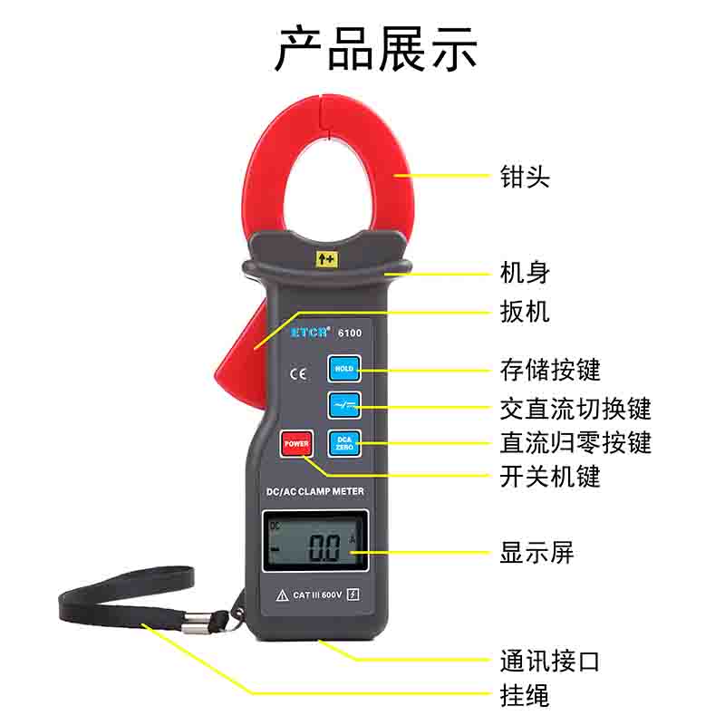 ETCR6100直流/交流鉗形電流表又名鉗形電流表,用于直流、交流電流測量,鉗表采用霍爾感應(yīng)及數(shù)字集成技術(shù),鉗頭無任何裸露金屬導(dǎo)體,非接觸測量,確保操作安全。廣泛適用于電力、通信、氣象、鐵路、油田、建筑、計(jì)量、科研教學(xué)單位、工礦企業(yè)等領(lǐng)域,是電工安全檢測的必備工具。