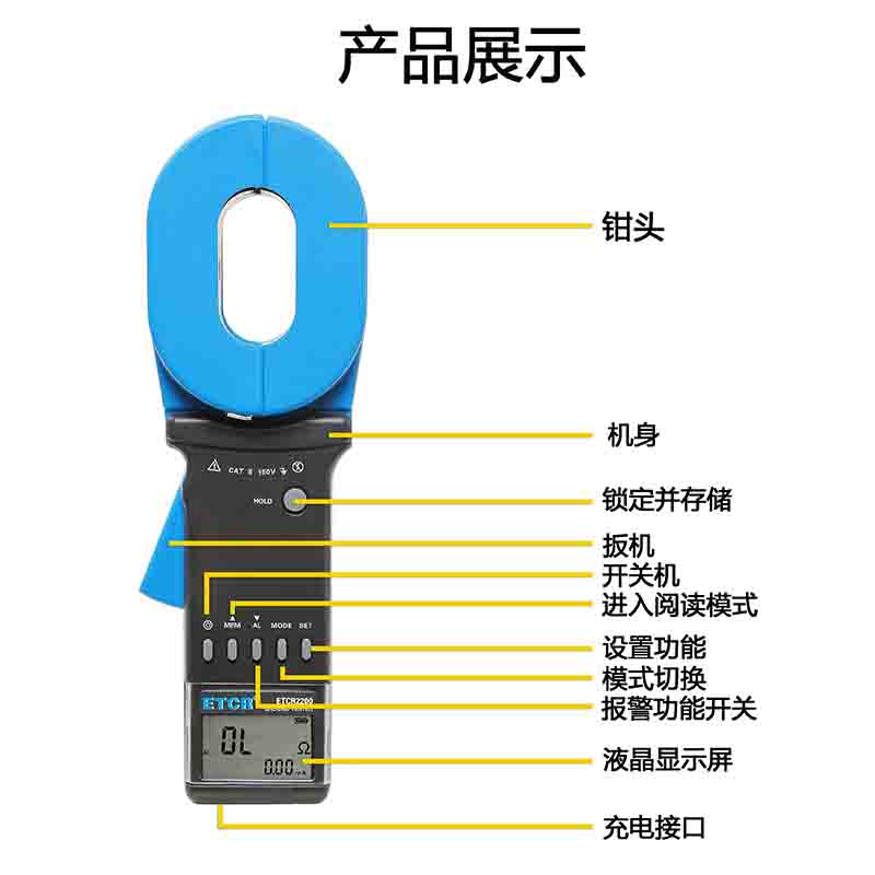 ETCR2200高端多功能鉗形接地電阻儀又稱鉗形接地電阻表、單鉗接地電阻測試儀、環(huán)路電阻測試儀、防雷接地電阻表、防雷地阻儀,用于接地電阻、回路電阻測量、接地電流測量、接地故障判斷。在測量有回路的接地系統(tǒng)時,不需斷開接地引下線,不需輔助接地極,安全快速、使用簡便。鉗形接地電阻儀廣泛應(yīng)用于電力、電信、氣象、油田、建筑及工業(yè)電氣設(shè)備等的接地電阻測量、回路電阻測量。長鉗口特別適宜于扁鋼接地的場所。