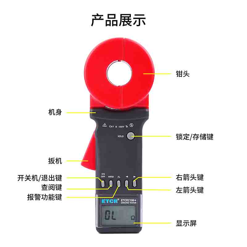 ETCR2100+鉗形接地電阻儀又稱鉗形接地電阻表、接地電阻儀、回路電阻測試儀、單鉗接地電阻測試儀、環(huán)路電阻測試儀,用于接地電阻、回路電阻測量、接地故障判斷。在測量有回路的接地系統(tǒng)時,不需斷開接地引下線,不需輔助接地極,安全快速、使用簡便。鉗形接地電阻儀廣泛應用于電力、電信、氣象、油田、建筑及工業(yè)電氣設備等的接地電阻測量、回路電阻測量。