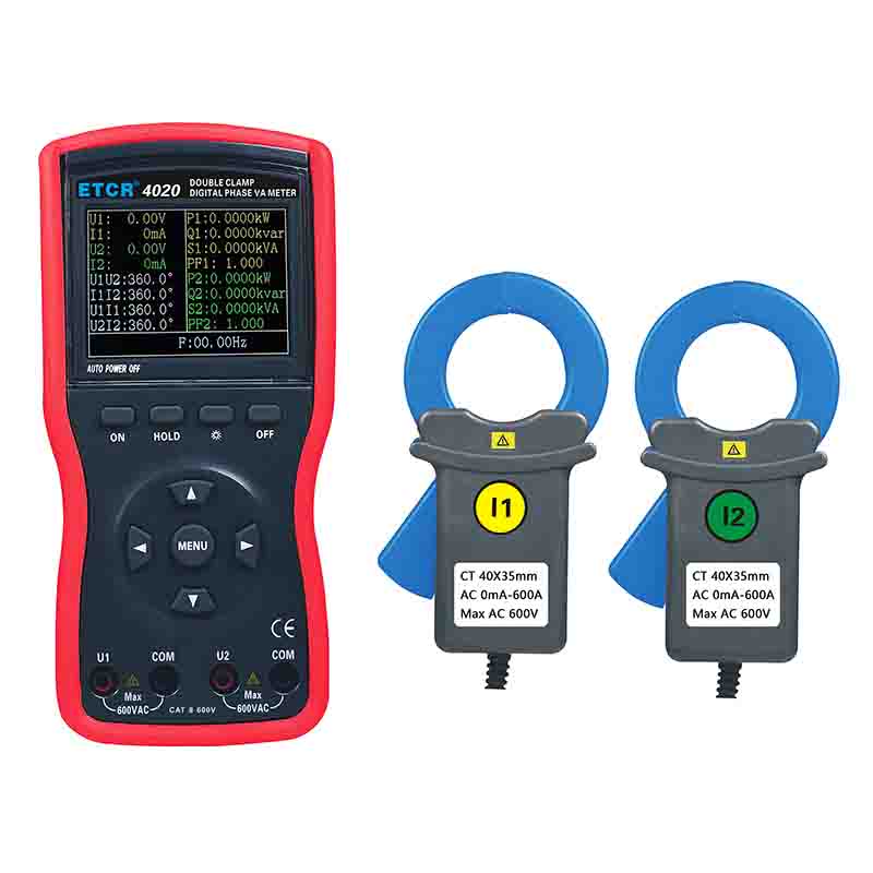 ETCR4020大口徑雙鉗數(shù)字相位伏安表Φ40mm0~360°0.00V~600V0.0mA~20.0A0.0W~360kW