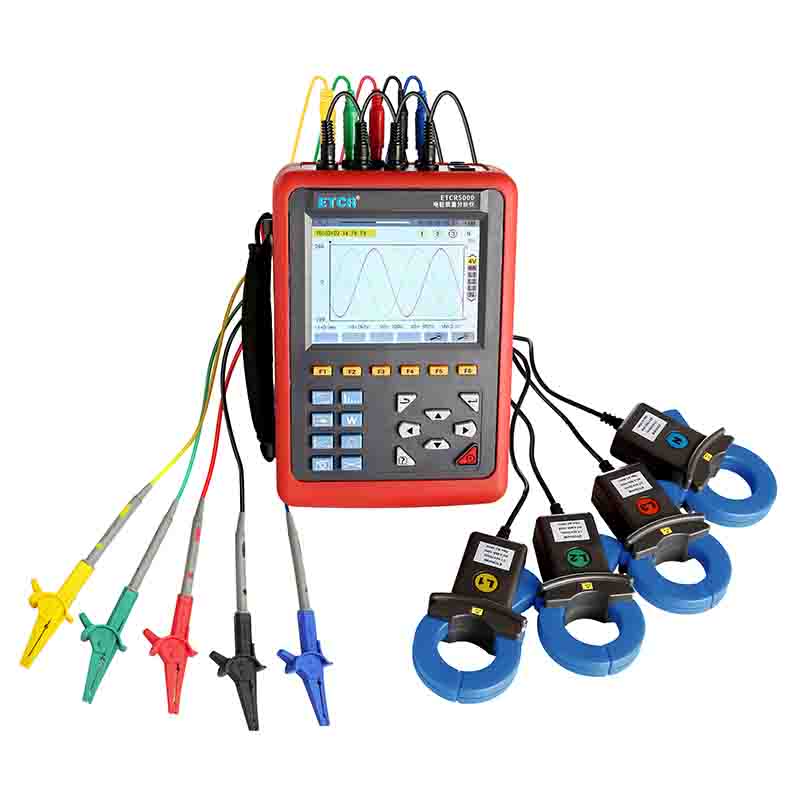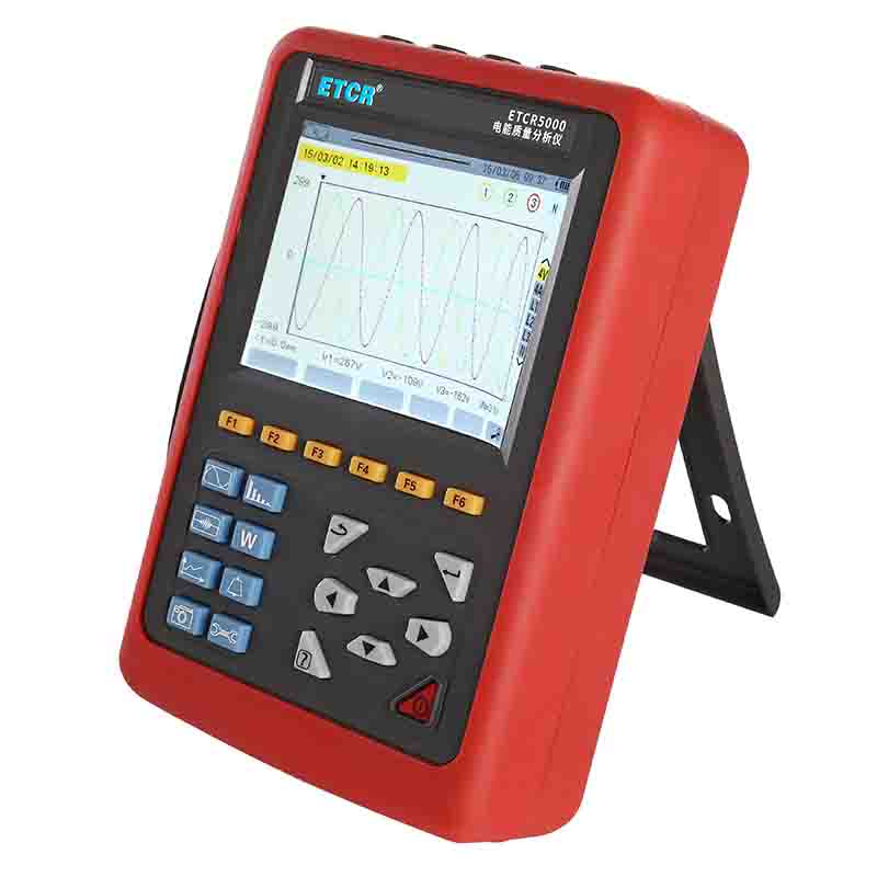 ETCR5000電能質量分析儀又稱電力質量分析儀、電力參數測試儀、諧波分析儀,是一款專為現場測試三相電能參數的多功能、智能化綜合型測試儀器??赏瑫r測量4路電流(ABC三相及中性線電流),4路電壓(ABC三相電壓及中性線對地電壓)、電流電壓的峰值、一段時間內的最大最小值、三相不平衡度、短時電壓閃變、變壓器K因數、有功功率、無功功率、視在功率、功率因數、位移功率因數、有功電能、無功電能、視在電能、諧波比、總諧波失真度等;顯示電流電壓的實時波形、相量圖、諧波比柱形圖;動態(tài)捕捉電壓電流瞬時變化,監(jiān)測啟動電流,監(jiān)測各電力參數并生成告警列表,長時間記錄測試數據并生成趨勢曲線圖等功能。適用于電力、石化、冶金、鐵路、工礦企業(yè)、科研院校、計量部門等。