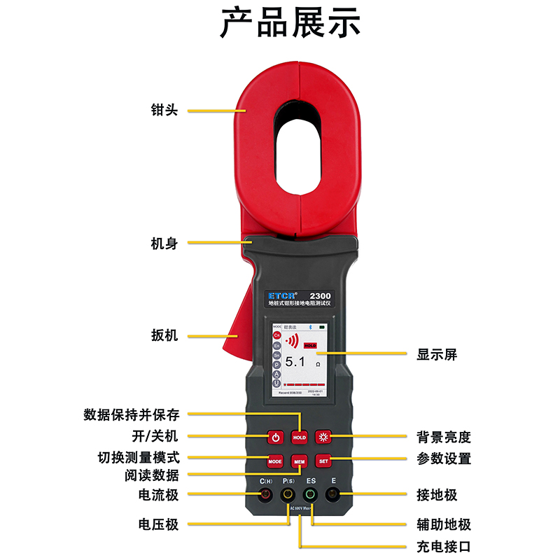 ETCR2300地樁式鉗形接地電阻測(cè)試儀
