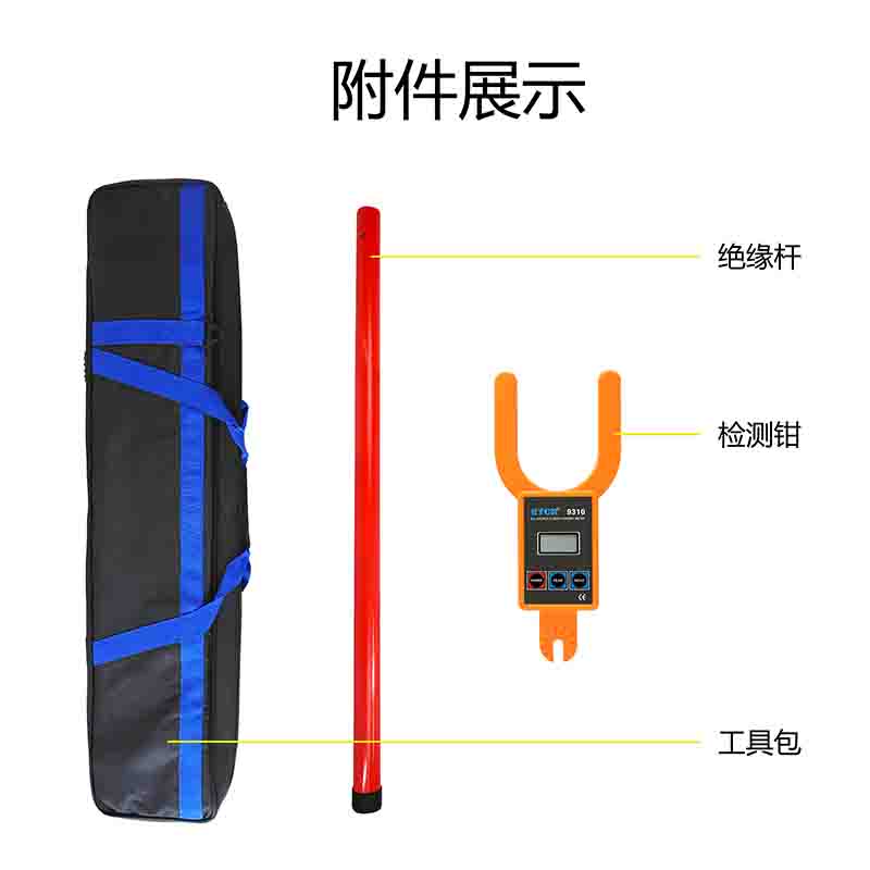 ETCR9310大口徑高低壓叉形電流表由專用大口徑叉形電流表配高壓絕緣桿組成。用于110kV以下測試需帶絕緣桿操作,在600V以下可不使用絕緣桿,直接使用叉形電流表測試。,儀表還具有數(shù)據(jù)保持、數(shù)據(jù)存儲等功能。