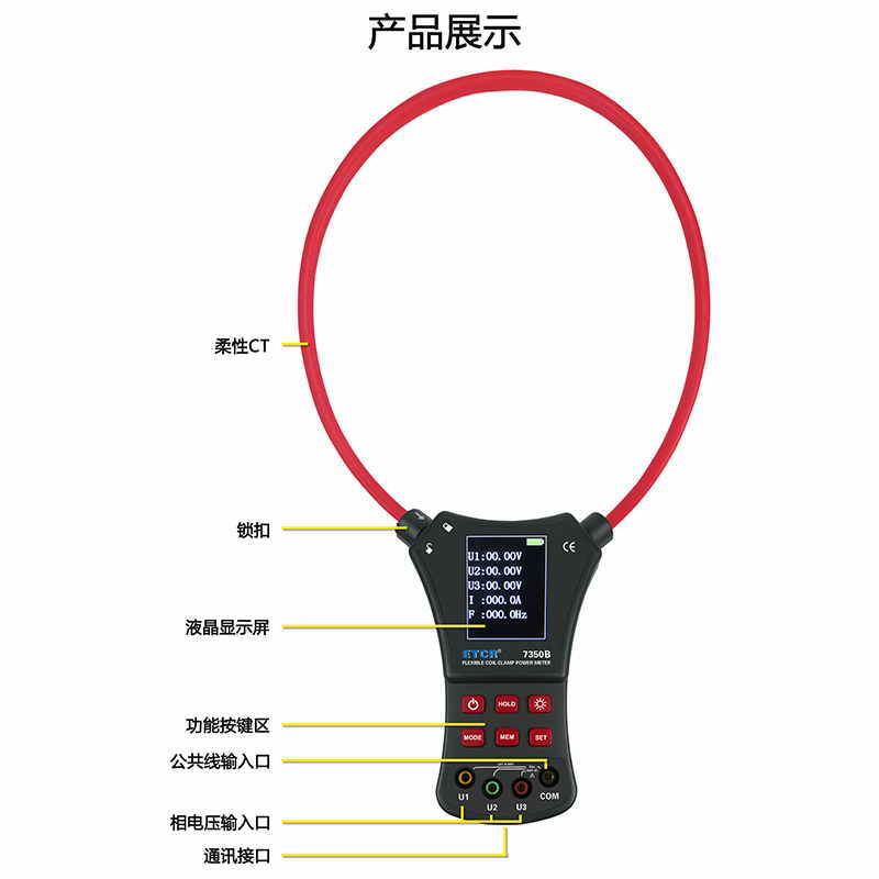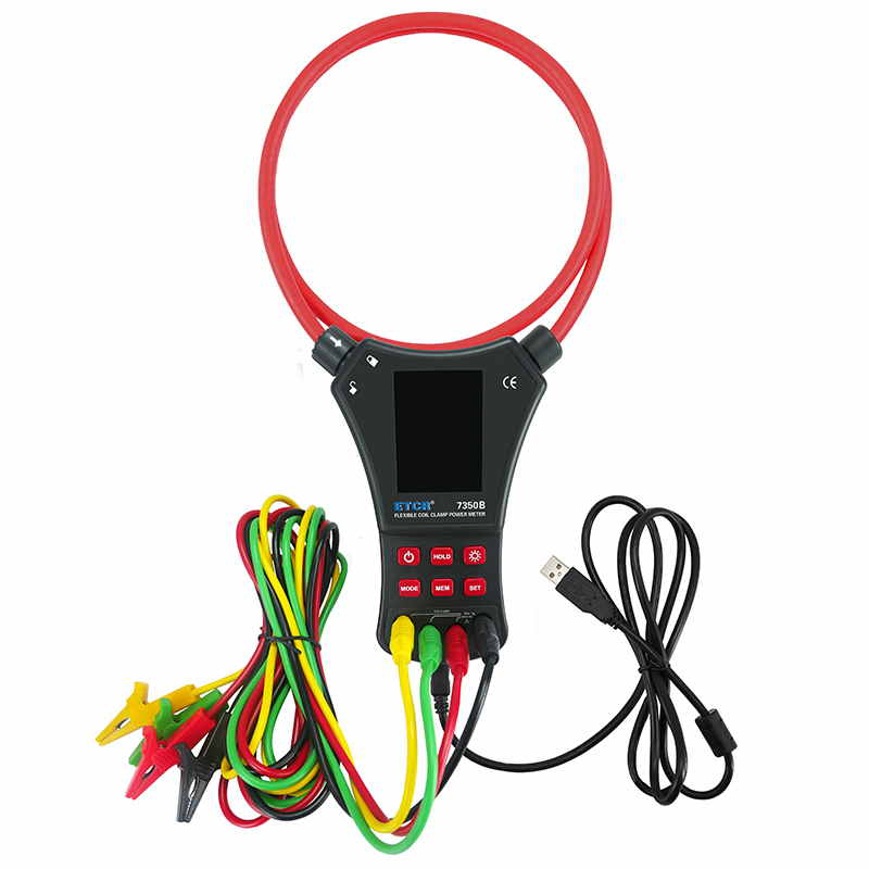 ETCR7350B柔性鉗形功率表又名羅氏線圈功率表、洛氏線圈功率表,用于現(xiàn)場測量三相交流電壓、電流、電壓間相位、電壓電流間相位、頻率、相序、電能、有功功率、無功功率、視在功率、功率因數(shù)、總功率等電能參數(shù)。還能用于判別變壓器接線組別、感性、容性電路,讀出差動(dòng)保護(hù)各組CT之間的相位關(guān)系,檢查電度表的接線正確與否,檢修線路設(shè)備等,為用電檢查人員提供一種安全、準(zhǔn)確、便捷的新型電力儀表。