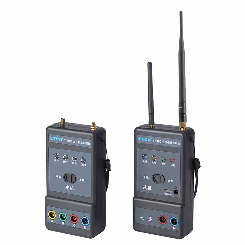 ETCR1100臺(tái)區(qū)相線識(shí)別儀由主機(jī)、從機(jī)、RF天線、測(cè)試線組成。通過衛(wèi)星通信等新技術(shù)手段,能快速準(zhǔn)確識(shí)別同一臺(tái)區(qū)距離較遠(yuǎn)的線路兩點(diǎn)各相線相別是否一致。儀表通訊距離遠(yuǎn)(最大可達(dá)8公里)臺(tái)區(qū)全覆蓋,即便城區(qū)建筑物密集臺(tái)區(qū)也能快速判斷相線,儀表操作簡(jiǎn)易,準(zhǔn)確直觀,體積小攜帶方便、安全快速,廣泛應(yīng)用于電纜施工、設(shè)備安裝、線路維護(hù)工作,特別適合三相不平衡治理裝置安裝施工使用。