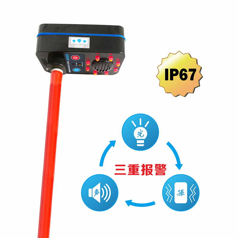 2、防護(hù)等級IP67,可用于水體驗(yàn)電報(bào)警(需使用低壓檔,安裝絕緣桿)。
