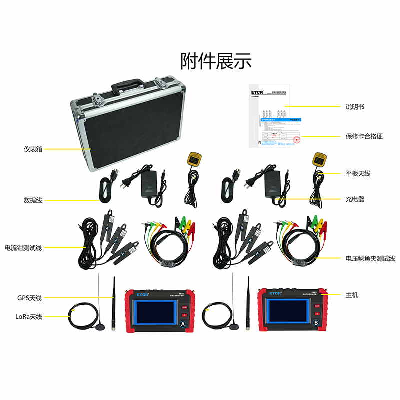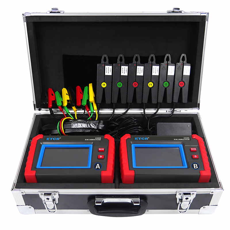 ETCR4480無線三相相位伏安表又稱三相電力參數(shù)測試儀、CT負(fù)荷測試儀、PT負(fù)荷測試儀,用于變電站內(nèi)不同位置的三相電力參數(shù)測量、PT無線核相、PT負(fù)荷測試、CT負(fù)荷測試、三相不平衡度測試、諧波分析等。儀表由2臺(tái)手持終端、6個(gè)電流鉗、2組電壓測試線等組成,2臺(tái)手持終端具有無線通訊及GPS通訊,可互設(shè)為主機(jī)或從機(jī),實(shí)現(xiàn)同步測量變電站內(nèi)不同位置之間電流、電壓、相位等參數(shù)。