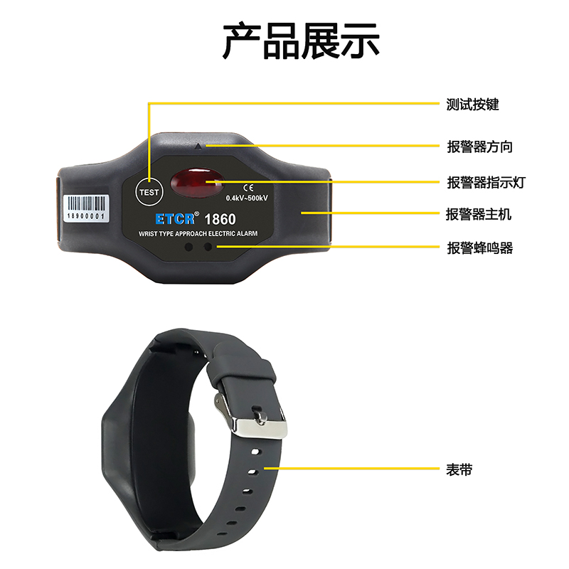 ETCR1860手腕式近電報警器又稱穿戴式近電報警器,為近電作業(yè)人員提供一款安全、實用、便捷的新型高壓報警裝置。帶電作業(yè)時,操作人員與帶電體的安全距離不能低于相關(guān)工作規(guī)程的要求。作業(yè)人員佩戴本報警器后,在接近高壓帶電體一定距離時,根據(jù)電壓等級相應(yīng)的安全距離,報警器發(fā)出聲光報警,提醒電氣工作人員注意安全,避免發(fā)生高壓觸電事故。
