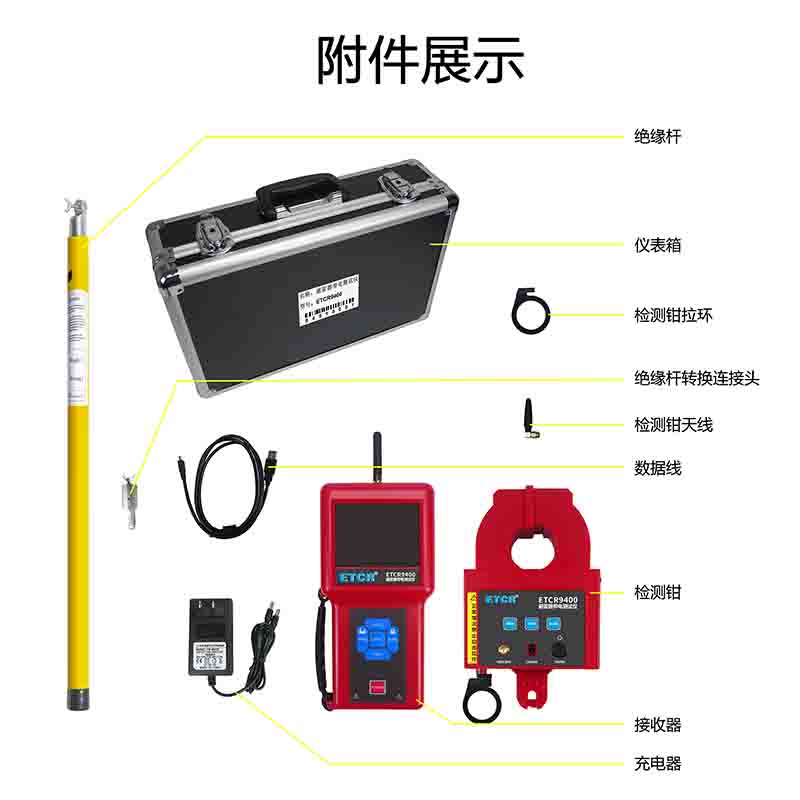 | 絕緣強度 | 單節(jié)絕緣桿AC110kV/rms,高壓檢測儀外殼與鐵心間:AC1000V/rms |