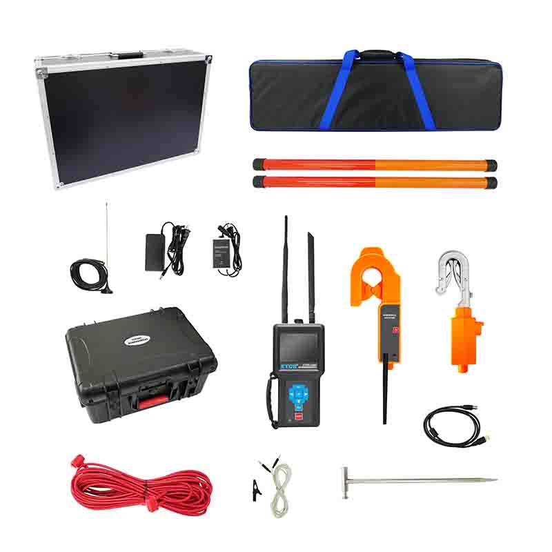 ETCR1400C架空線路接地故障巡查儀,由主機(jī)、電流檢測鉗、高壓發(fā)射端、接收機(jī)、測試線、接地針、絕緣桿及附件組成。主機(jī)與接收器之間為4G/LORA雙模通信,控制高壓信號輸出,同時將測試結(jié)果發(fā)出到主機(jī)。電流鉗與接收器之間為LORA通信,將電流鉗檢測到的信號發(fā)送到接收器。主機(jī)采用7寸彩屏,故障指向清晰明了,測試結(jié)果一目了然,接收機(jī)具有語音播報功能,測試結(jié)果、線路故障方向,使得現(xiàn)場操作更加輕松。電流檢測鉗及高壓發(fā)射端結(jié)構(gòu)緊湊,體積小,重量輕,掛裝方便,一次掛裝即可完成線路故障查找,操作簡易快速,極大減輕了測試的工作強(qiáng)度,提高工作效率。