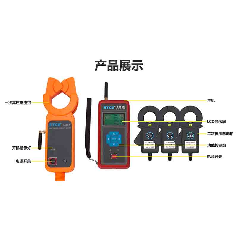 ETCR9500C-030無線高壓CT變比測試儀又稱互感器電流變比測試儀、互感器比差測試儀、電流互感器變比測試儀,用于35kV以下電流互感器的一次電流、二次電流大小、變比,相別、極性判斷。儀器采用3個二次低壓電流鉗(口徑25mm×30mm)同時測試低壓線路,可直接確定高壓端與低壓端的對應(yīng)相位關(guān)系,無需多次鉗測。廣泛應(yīng)用于變電站﹑發(fā)電廠﹑電力稽查部門、工礦企業(yè)以及檢測站﹑電工維修部門進(jìn)行電流檢測、反竊電及野外電工作業(yè)等。