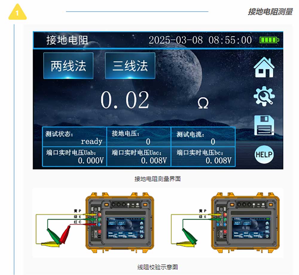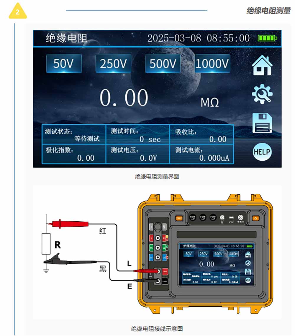測(cè)試示意圖及接線標(biāo)識(shí)用不同顏色區(qū)分方便用戶在不同功能下的不同使用習(xí)慣。